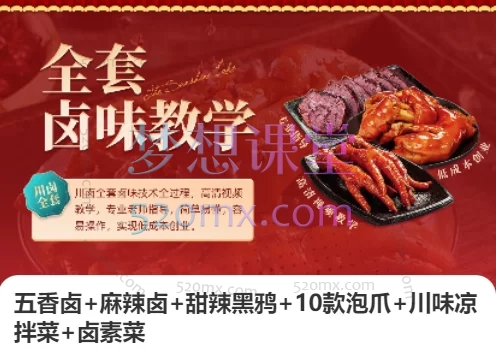 掌握正宗卤味核心技术,开启您的餐饮创业之路!本课程《卤哆哆全能卤味技术实战课》由资深师傅倾囊相授,系统讲解五香卤、麻辣卤、甜辣黑鸭三大核心卤味体系的完整制作工艺,并独家包含10款网红风味泡爪(柠檬、蒜蓉、泡椒、酸辣、藤椒、麻辣、糊辣、百香果、双椒、蒜香)的制作秘方。